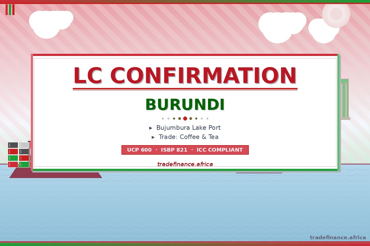 An LC confirmation fee for Burundi is the cost of engaging an international bank as primary payment guarantor alongside a Burundian issuing institution.