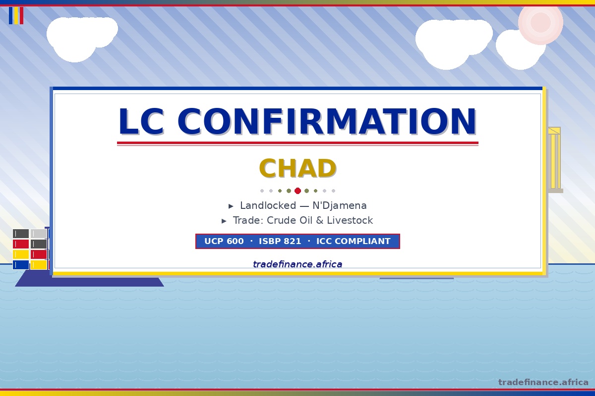 The LC confirmation fee for Chad represents the annual cost of an international bank’s irrevocable payment guarantee layered over a documentary credit issued by a Chadian institution.