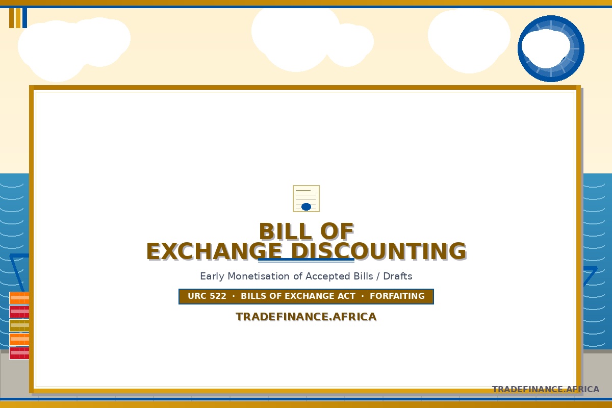 Draft bill of exchange discounting is a financing technique whereby a bank purchases an exporter’s accepted time draft at a reduced price, providing immediate liquidity before the payment maturity date.
