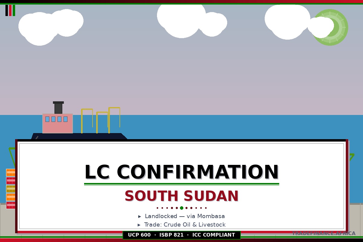 An LC confirmation fee for South Sudan is the annual rate a foreign bank charges to guarantee a South Sudanese-issued letter of credit.